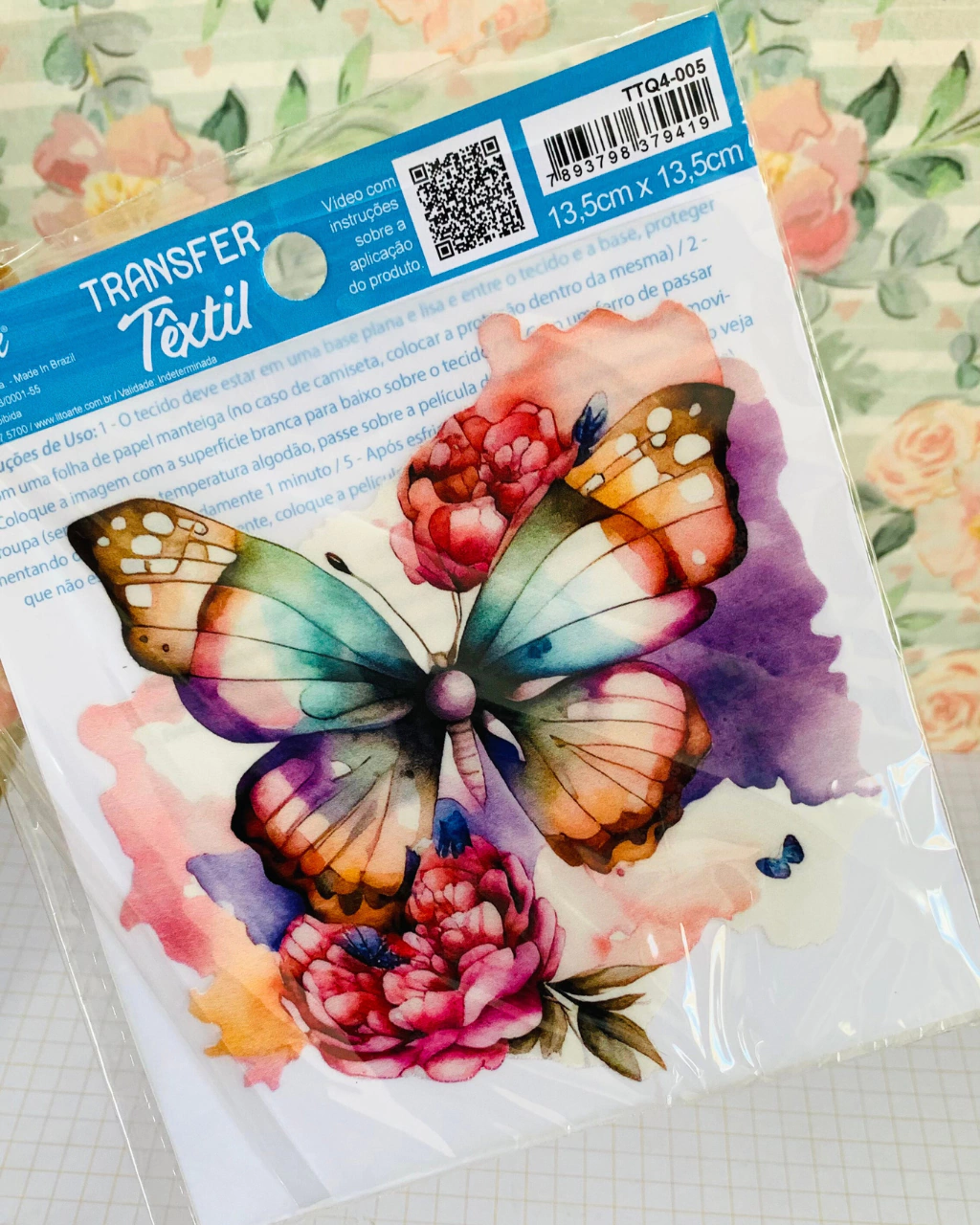 Nosso transfer têxtil Borboleta traz inspirações da natureza, perfeito para dar vida a roupas e acessórios de forma prática e criativa.